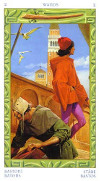 Это Таро, выполненное в системе Уэйта, переносит нас во время жизни итальянского первооткрывателя Марко Поло и его путешествия по Древнему Китаю. Колода соединила в себе знакомую нам европейскую символику и тонкость восточной культуры. Это особенно заметно в фонтанирующих красками иллюстрациях, взятых из миниатюр итальянского художника Северино Баральди. Картины позволяют почувствовать таинственный запах приключений настолько живо, что вы можете дышать ароматом далёких стран и слышать шум моря. Каждая карта в колоде хранит настоящий кладезь знаний. Главное не бояться правильно задавать вопросы.