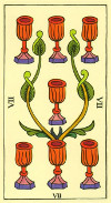 Контрастная цветовая схема состоит из четырех цветов. Старшие Арканы подписаны на двух языках, испанском и английском. Карты-номера не имеют подписей, только пронумерованы римскими цифрами.